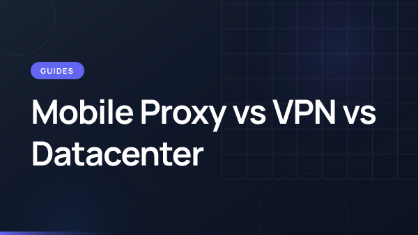 Read articleDetailed comparison of mobile proxies, VPNs, and datacenter proxies — trust scores, speed, detection risk, and which fits your use case.